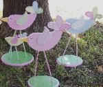 | These are a cute addition to any Bird Owl Themed Room. You do not find much that can stand on a dresser or shelf or even on the floor for room decor. So I created these adorable standing flock of birds.They stand about 18-20" tall and will only need to insert their legs in the per drilled holes with glue included once they arrive at your home. This is to avoid breakage of their legs in shipping. $28.00 Singles Free Shipping $35.00 Doubles Free Shipping |