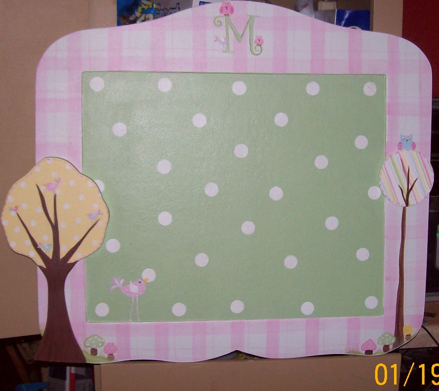 | Our exclusive REAL CORK Bulletin Boards are a must have for any child and all their works of Art. It measures approx 22" wide and about 24" tall, you wont find these anywhere else on the web built with a nice wooden frame and all hand painted. Can Put a name at the Bottom of the Frame or Initital at the top. Can be up to 4 weeks ship time $75.00 Sale $59.95 special Free Shipping |