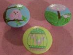 | These are 2" Knobs They are wood and have several layers of Poly for protection. Comes with a screw. We welcome special request to match your fabrics or decor. No extra charge unless they are very delicate artwork. ship time can be up to 6 weeks this time of year. Reg $6.00 Free Shipping SALE $4.00 Will end at any time |