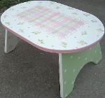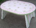 | Oval Step Stool Can be painted in colors of your choice. This gives you choices of designs. 15"W x 7 1/2 T x 10" D Good size for Potties, Sinks, Beds Etc REG $59.95 Shipping is FREE |