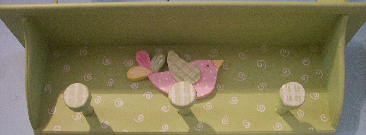 | These shelfs are 26" Long by 9" Tall by 7" Deep. 2 pegs for hanging pretty things. They have dimensional Owls and birds mounted on them with painting designs as well. 59.00 |