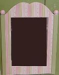 | Our exclusive Childs vanity makeup set. The mirror can be hung at any level on the wall or attached to the back. The stool height is 12" from floor to top seat. The height of the vanity top is 24"wide 14"deep 26" tall. Mirror can be personalized with childs name or Initials free of charge. Also can be done in Pinks and greens only, or colors to match your room decor. $275.00 |