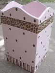 | Standard Wooden Wastebasket Hand painted inside and out Wooden Ball feet 12" tall 10" wide These are big wastebaskets. Sealed with several coats or Poly $59.95 each Can be painted in any colors you need with the ball feet |