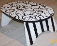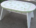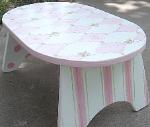 | Oval Step Stool Can be painted in colors of your choice. This gives you choices of designs. 15"W x 7 1/2 T x 10" D Good size for Potties, Sinks, Beds Etc REG $59.95 Shipping is FREE |