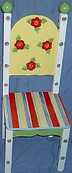 | This is a set I did for twins for their playhouse. Boy and Girl. The table was not assembles before shipping so I didn't get it all set up. The legs were done with big green checks. This was adorable when finished. When ordering for a boy we can leave the roses off and put stars or some other theme in the corners. Please not on your invoice page. Top is 28" square stands about 22" tall Chairs are about24-26" tall. $300.00 2 chairs $475.00 4 chairs FREE SHIPPING |