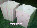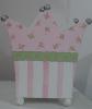 | Can you imagine using this in your childs bedroom or bath. it can be used in the prince frog themed bath or bedroom. the princess one will have pink roses on pink on the crown top with silver balls, the bottom is in pink stripes, while the side is done in our pink plaid designor green with pink dots, with green ball feet with pink dots or white balls with green swirls. Approx 12-14" wide 14" tall can be done in colors to match your room decor.All wood as is all our products no MDF. $69.95 |