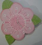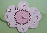 | Flower shaped Wood Clock , goes with many a bedding theme today. Has pink polka dot numbers/ Comes with Battery 12 1/2" x 12 1/2" $29.95 |